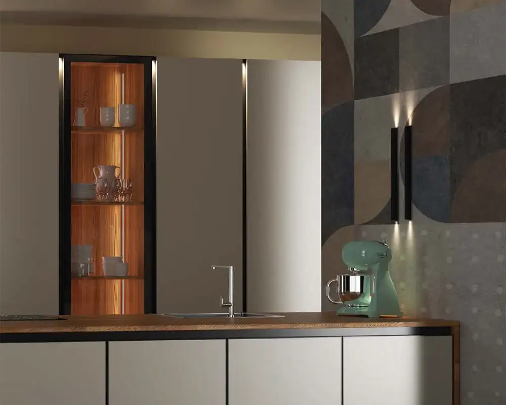 The lamp Luke by Ossicolor is a solution for lighting for vertical kitchen grooves, designed to integrate perfectly into contemporary furniture systems. Installable directly in the vertical grooves or on the wall, Luke combines minimal design, LED technology and application versatility.