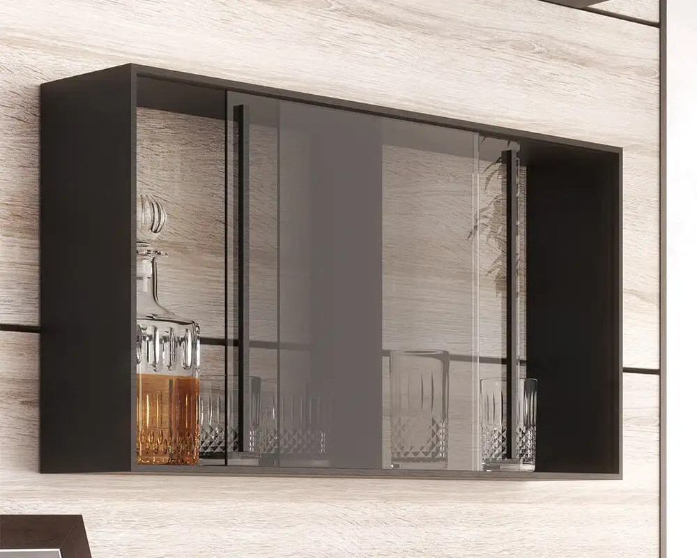 Modus with doors – Line 03 by Ossicolor is a storage element designed to enrich the Line 03 boiserie with an elegant and functional solution. The aluminum frame houses two sliding glass doors, ensuring visual lightness and material continuity with the wall system.