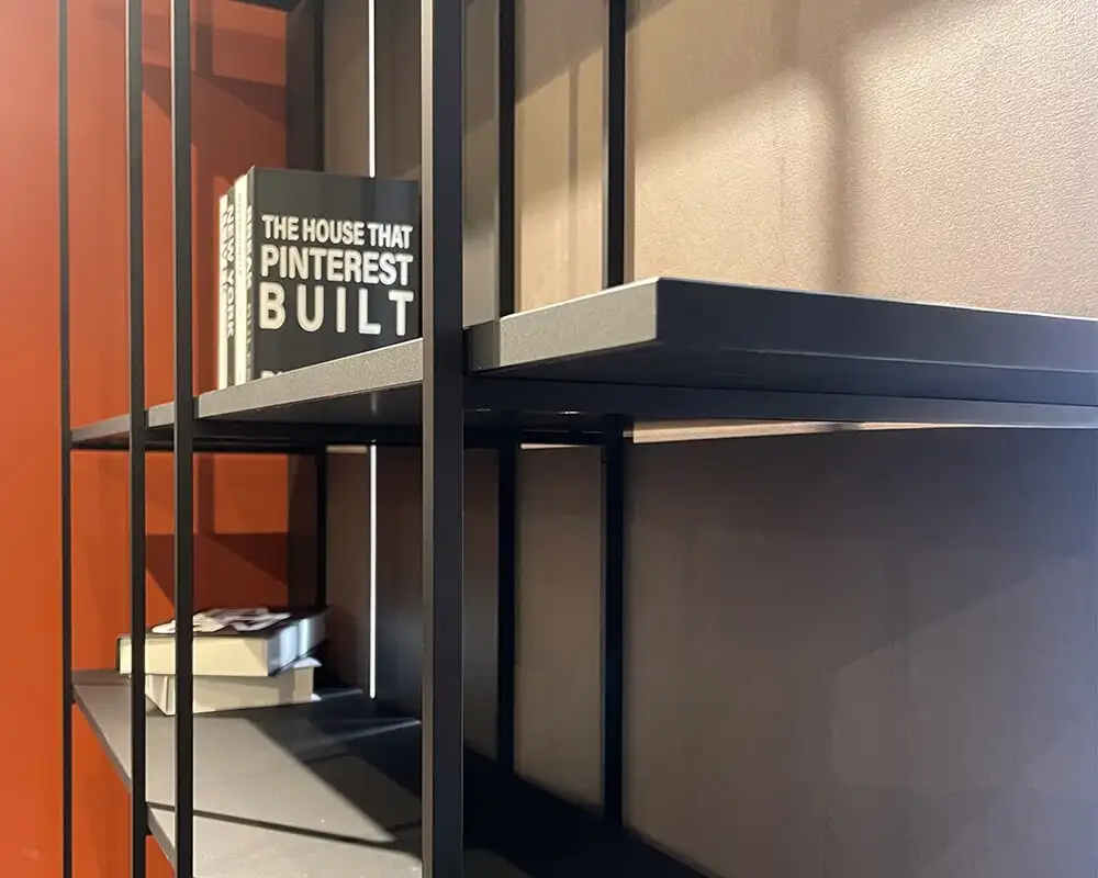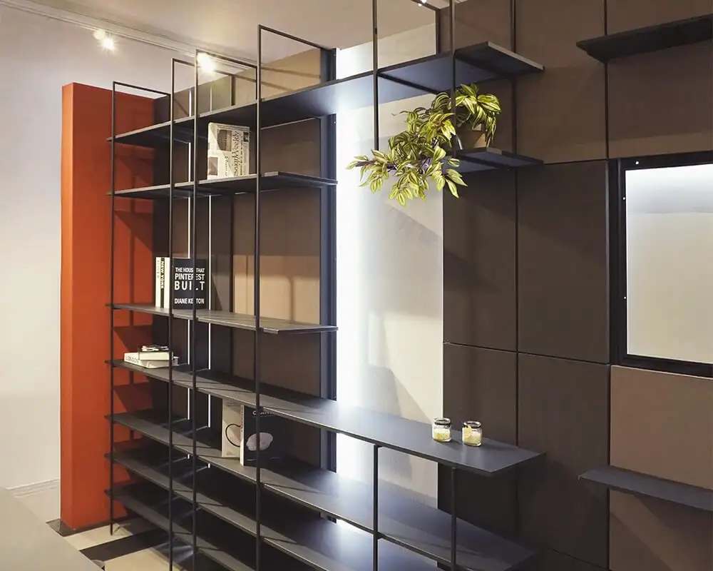 Thanks to its technical configuration, Size S – Vertical 10 by Ossicolor offers endless compositional possibilities, allowing the insertion of wooden shelves or other materials, for an elegant and minimal aesthetic result. The system's versatility ensures freedom in design, adapting to residential and contract contexts.